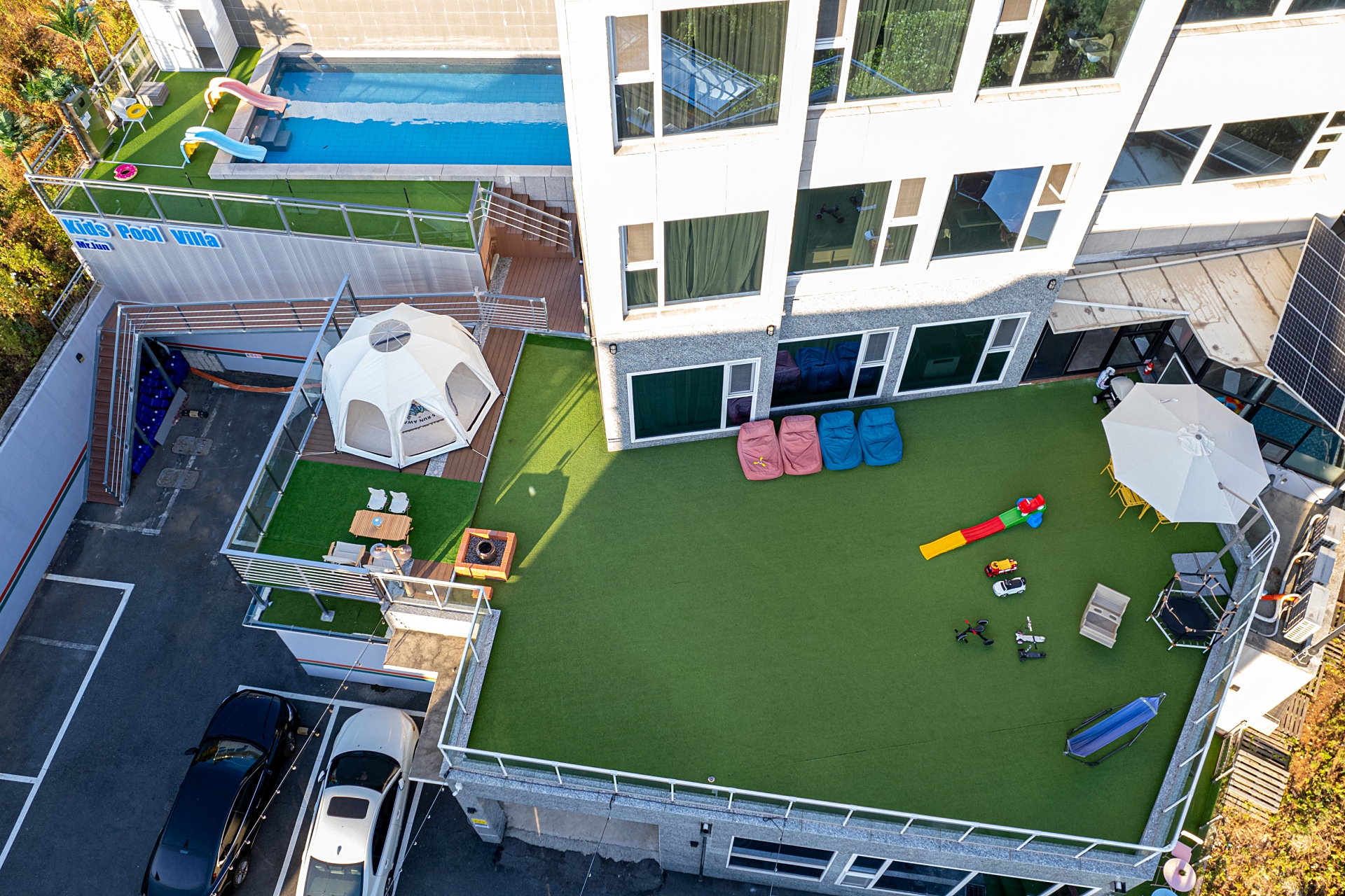 미스터준 키즈풀빌라의 아름다운 전경입니다.